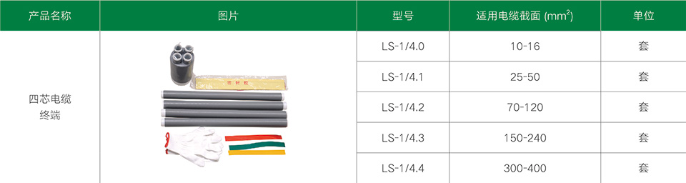 當前位置:主頁 > 產品展示 > 1KV冷縮電纜終端附件 > 1KV四芯冷縮終端