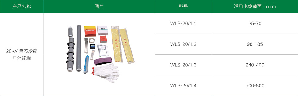 20kV單芯冷縮電纜附件系列產品,適用于12/20、18/24kV單芯聚乙烯和交聯聚乙烯電力電纜。冷縮電纜附件采用進口液態硅橡膠材料制造而成,不但具有十分優良的電氣性能,而且還具有優異的憎水性、高彈性、使用壽命長及恒定的收縮壓力等物理特性。采用冷縮電纜附件,無需明火及特殊工具,只需輕輕抽取塑料支撐條即可,就能自動收縮復位,安裝非常方便于工作。具有良好的電氣性能和機械性能,能在各種惡劣的環境條件下長期使用。具有重量輕、安裝方便等優點。廣泛地應用于電力、石油、化工、冶金、鐵路、港口和建筑各個領域。