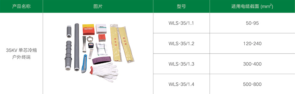 35kV單芯冷縮電纜附件系列產品,適用于21/35、26/35kV單芯聚乙烯和交聯聚乙烯電力電纜。冷縮電纜附件采用進口液態硅橡膠材料制造而成,不但具有十分優良的電氣性能,而且還具有優異的憎水性、高彈性、使用壽命長及恒定的收縮壓力等物理特性。采用冷縮電纜附件,無需明火及特殊工具,只需輕輕抽取塑料支撐條即可,就能自動收縮復位,安裝非常方便于工作。具有良好的電氣性能和機械性能,能在各種惡劣的環境條件下長期使用。具有重量輕、安裝方便等優點。廣泛地應用于電力、石油、化工、冶金、鐵路、港口和建筑各個領域。