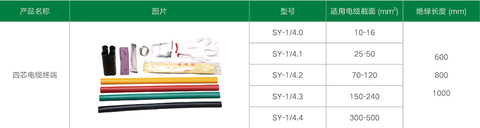 1KV熱縮電力電纜終端頭、中間接頭系列產品,集防水、應力控制、絕緣于一體。具有良好的電氣性能和機械性能,能在各種惡劣的環境條件下長期使用。具有重量輕、安裝方便等優點。廣泛地應用電力、石油化工、治金、鐵路港口和建筑領域。