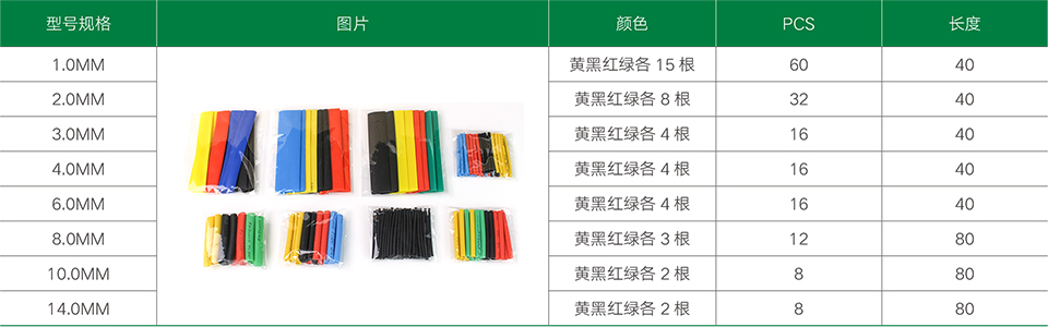 當前位置:主頁 > 產品展示 > 家用熱縮管套裝 > 熱縮管套裝164PCS(袋裝)