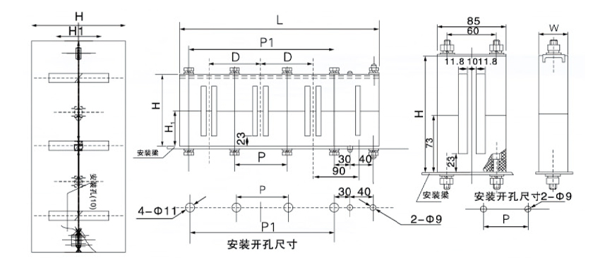 | Insulated busbar frame | PMJ4-3雙排 | 315mm | 36mm | three-phase | 100mm | 100mm | 280mm |
