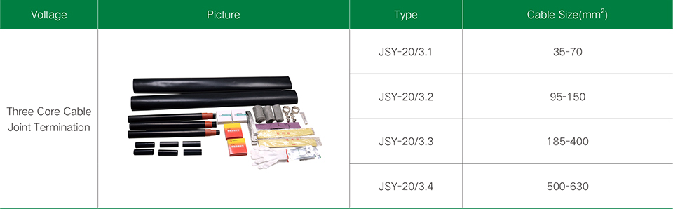 20KV three-core heat shrinkable cable intermediate joint can provide reliable cable connection and insulation protection, ensuring the safety and reliability of power transmission. After professional installation and commissioning, they can meet the requirements of high-voltage power systems and adapt to harsh environmental conditions. The specific selection and application need to be determined according to the actual situation and the requirements of the power project.
