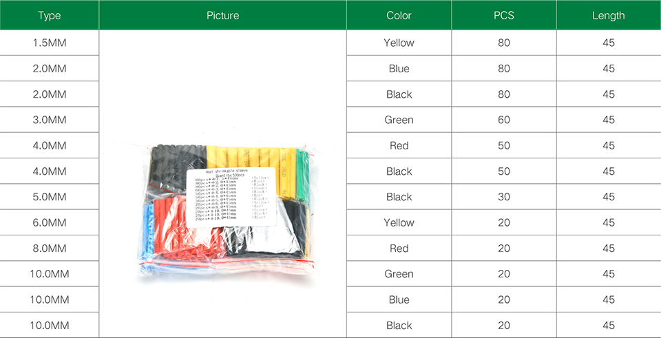Home > Products > Household heat shrink tubing set > Heat shrink tubing set 530PCS (bagged)