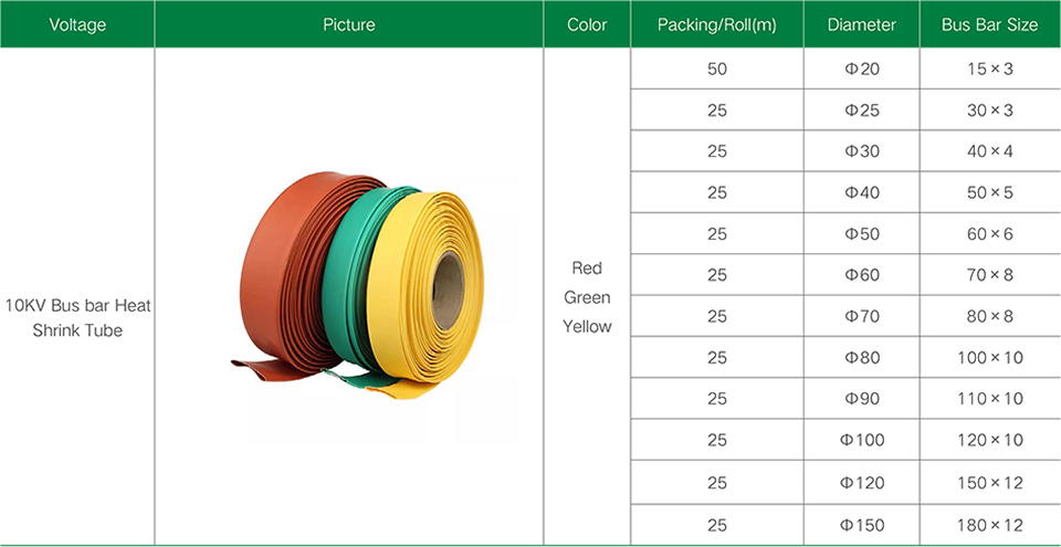 Shrink busbars are available in a variety of sizes and sizes to accommodate busbars of different sizes and shapes. Users can choose the right heat shrinkable busbar tube according to actual needs to ensure complete coverage and insulation effect.